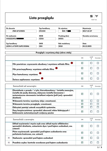 - Zaniedbanie przeglądu w wymaganym terminie może skutkować utratą gwarancji na poszczególne elementy pojazdu lub całkowitą utratą ochrony gwarancyjnej.
